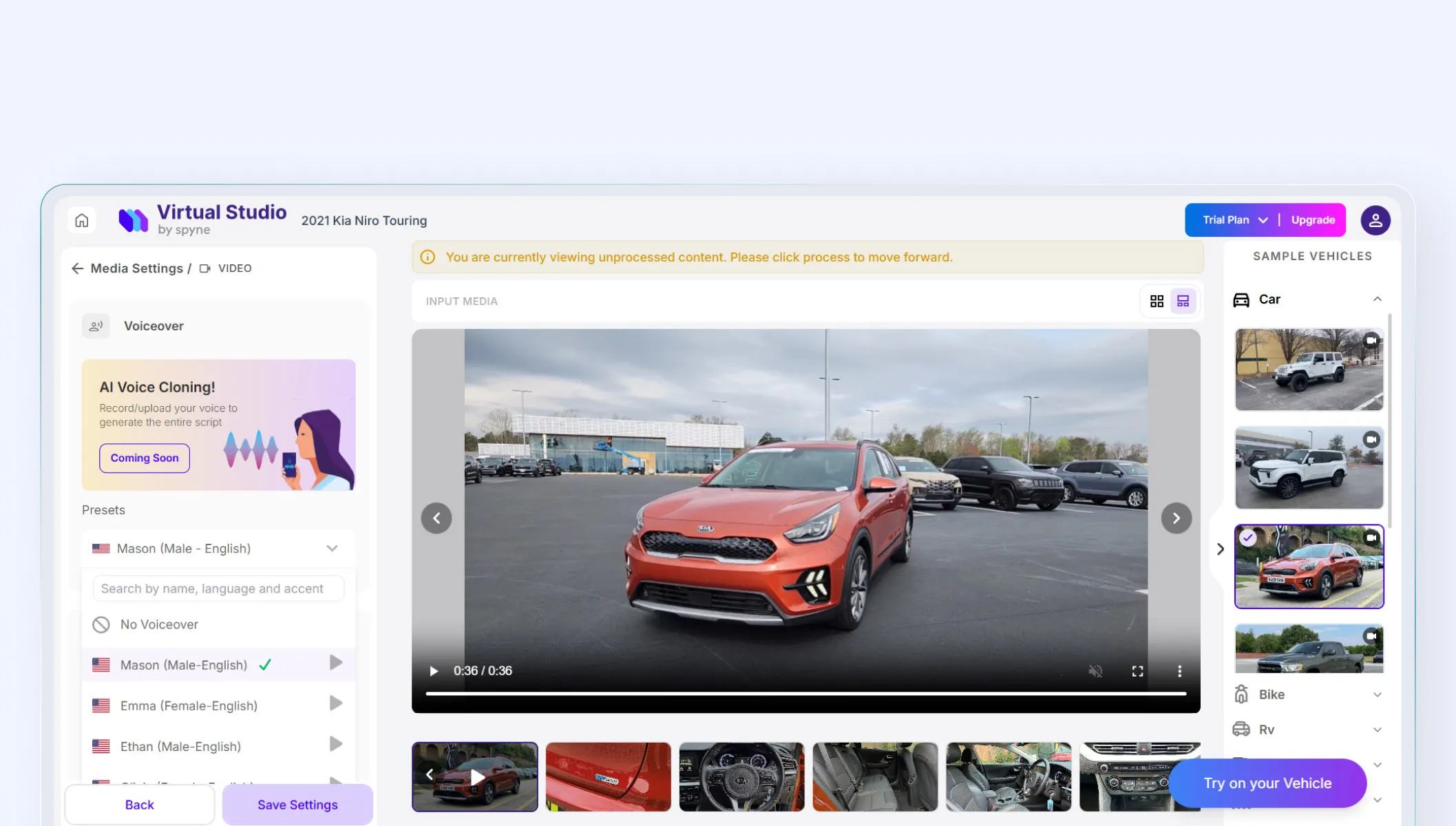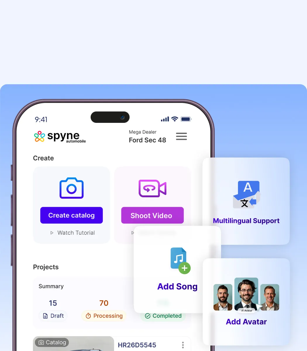 Elevate your dealership’s marketing strategy and efforts with AI-powered video editing only on Spyne. Captivate buyers, increase the inquiry rate, and bring in more sales while saving your pockets.