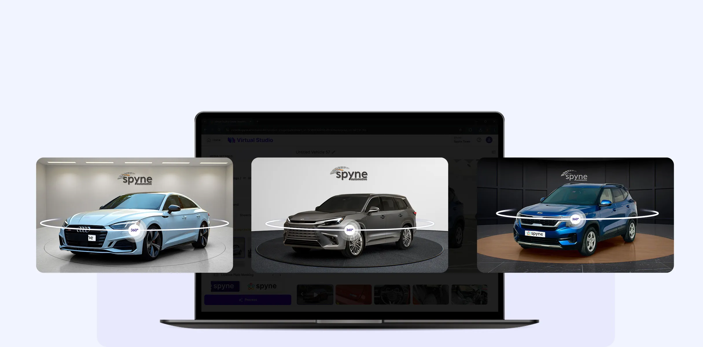 Elevate your car intro videos with crystal-clear, studio-grade 360° spins, making every angle stand out effortlessly with Spyne.